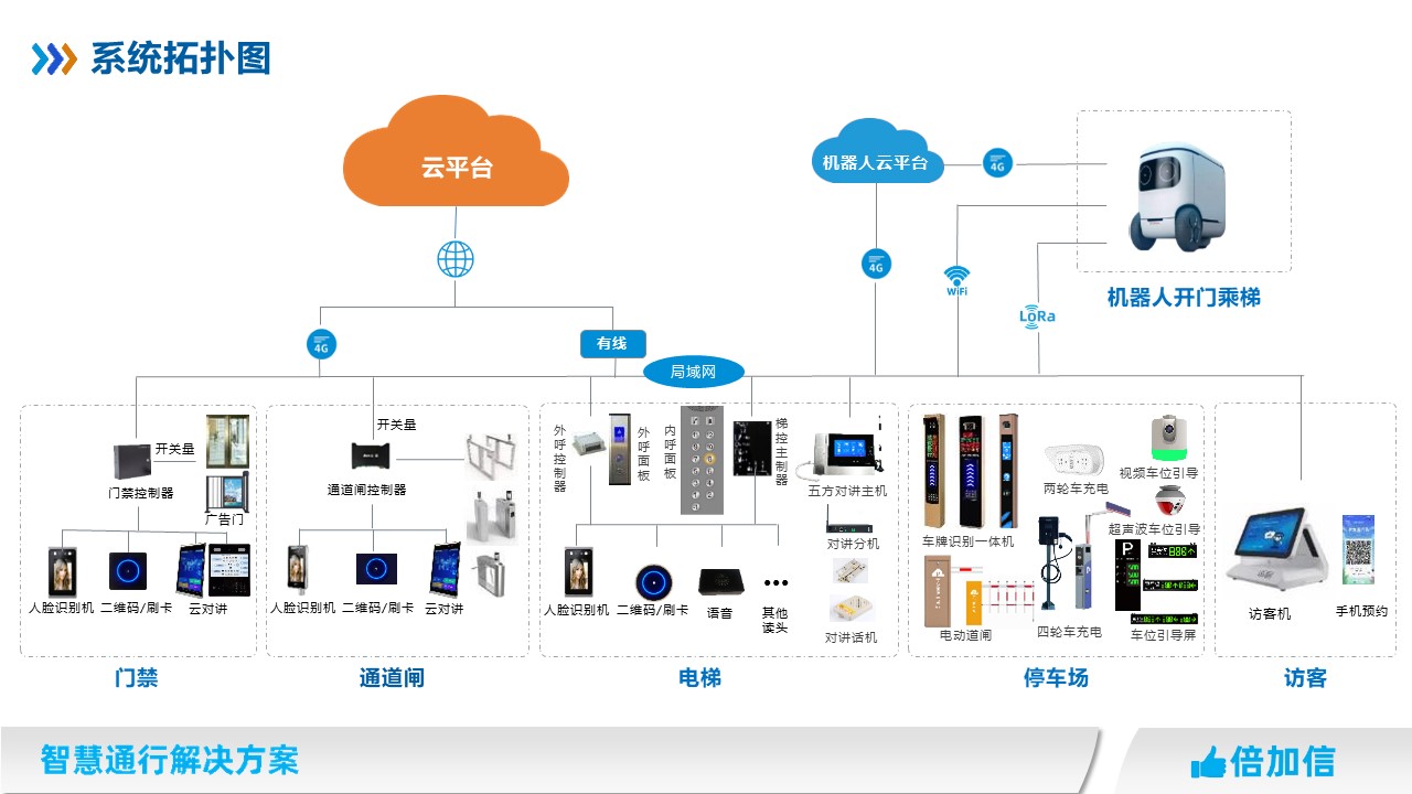 機器人通過WIFI通訊、4G通訊、Lora通訊等,發(fā)送指令開門、過閘機、招梯、乘梯等。