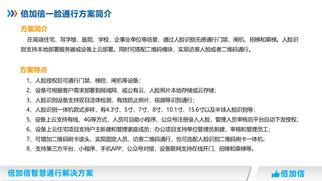倍加信一臉通行解決方案 人臉識(shí)別授權(quán)一次,通行門禁、通道閘、梯控等系統(tǒng)