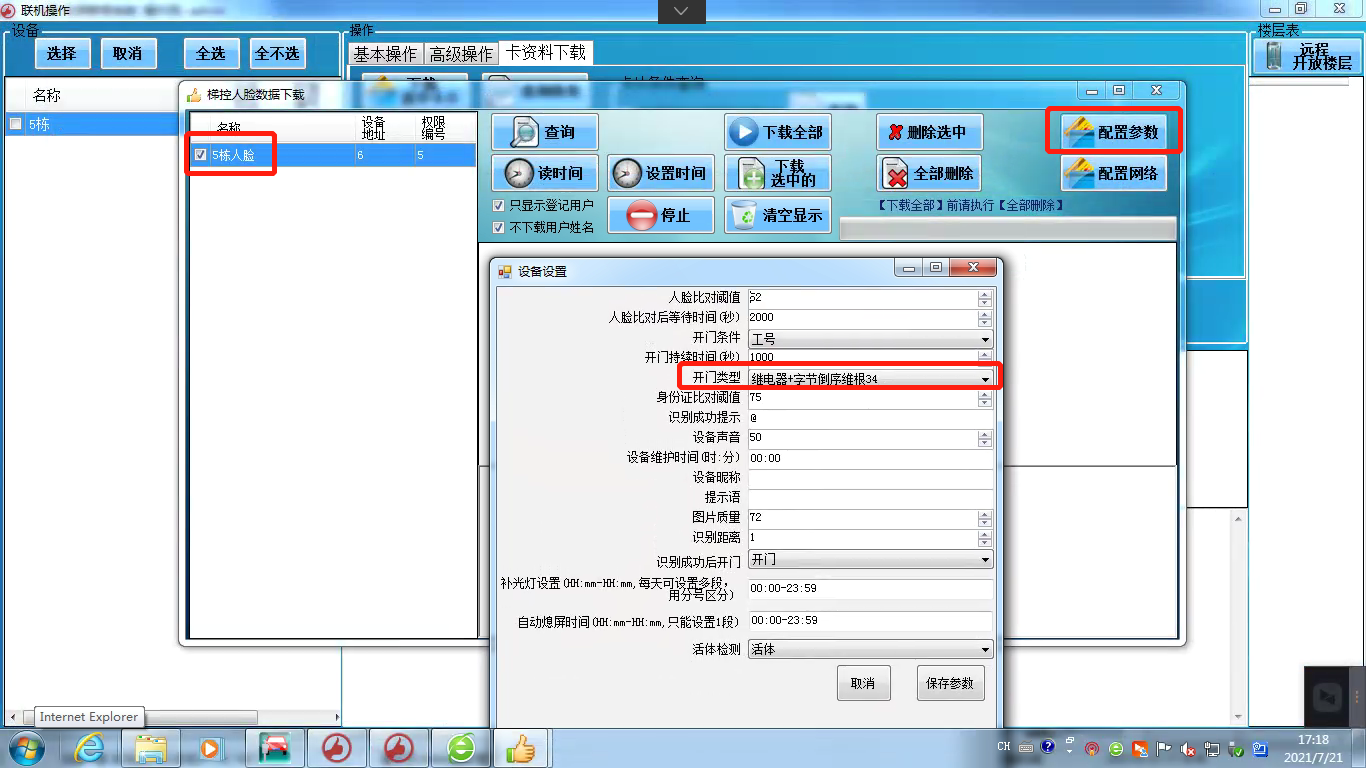 3、人臉綁定的卡號也需要下載到梯控主控制器中。