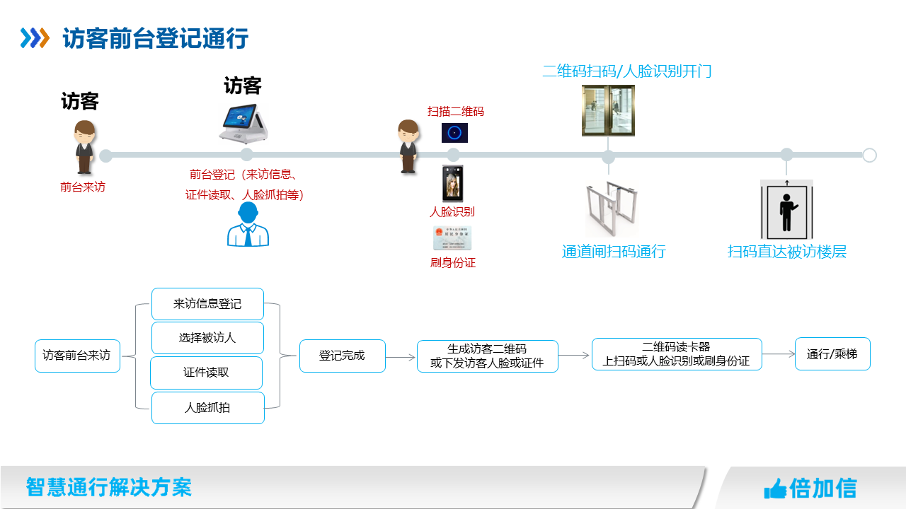 7、同時(shí)選配設(shè)備可支持其他多種形式訪客通行,如身份證讀卡、臨時(shí)訪客卡、訪客密碼等等通行;